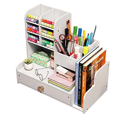 Notwoe Portapenne da Scrivania con Cassetto, Versatile Organizer Scrivania,Porta Penne per Scrivania,Portapenne Porta Evidenziatori da Scrivania bianco per casa,ufficio e scuola.