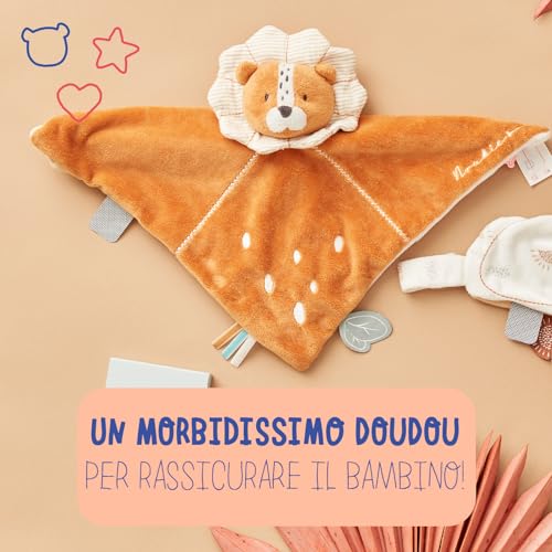 Noukie's - Doudou per bambini - Doudou in veloudoux - Babou il Leone - Multifunzione - Marrone - 1 unità