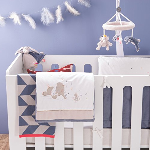 Noukies BB1580.42 Bao & Wapi Coperta, Blu Grigio/Avorio, 75x100 cm