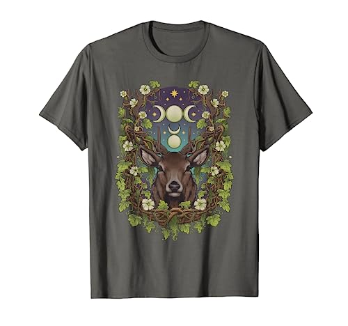 Art Nouveau Cernunnos Cervo Boemo Natura Fasi Lunari Wicca Maglietta