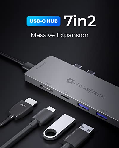 NOV8Tech Adattatore multiporta da USB C a HDMI Hub 7in2 per MacBook Pro 2020 M1 2019 2018 2017 2016 grigio e MacBook Air 2020 M1 2019 2018 UHS II SD micro SD, Thunderbolt 3 100 W, USB C, 2X USB 3
