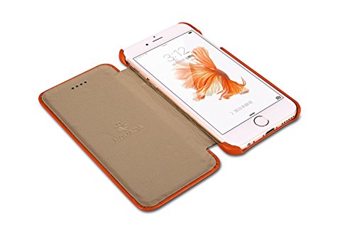 Novada Custodia per iPhone 6 6S, Custodia a Flip in Vera Pelle per iPhone 6 6S - Collezione Classico - Arancia