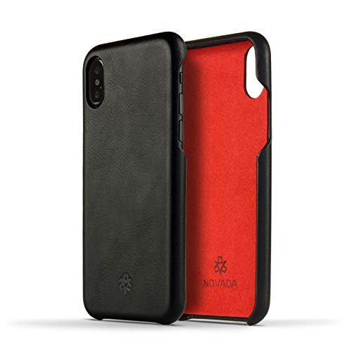 NOVADA Custodia in Vera Pelle per iPhone X - Ultra Sottile Cover posteriore - Nero