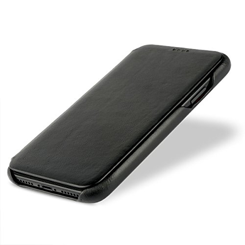 NOVADA Custodia in Vera Pelle per iPhone X - Ultra Sottile Folio Flip Cover con Sonno-Veglia Funzione - Nero