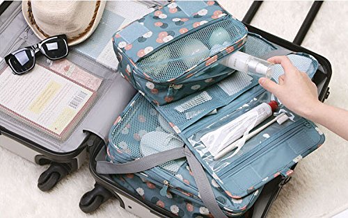 NOVAGO Borsa da Toilette Grande, Borsetta da Viaggiocon Multi-compartimenti (Fiori / Blu)