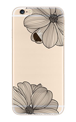 NOVAGO Compatibile con iPhone 6, iPhone 6s (4,7'') Custodia cover del Gel di Silicone Resistente(fiori neri)