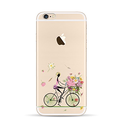 NOVAGO Compatibile con iPhone 6, iPhone 6s (4,7'') Custodia cover del Gel di Silicone Resistente(Ragazza in bicicletta #2)