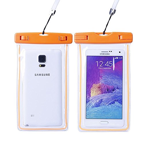 NOVAGO Custodia impermeabile, Trasparente e fluorescente per iPhone 6, 6 Plus, Samsung Galaxy S6, Samsung Note 4 / 3 / 2, LG G3 / G2 / Xperia Z3 / Z2, HTC One M9, certificato IPX8 fino a 30 metri ( Arancione )