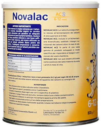 Novalac ac2 è un latte di proseguimento a ridotto contenuto di lattosio idoneo all'alimentazione dei lattanti di età superiore ai 6 mesi