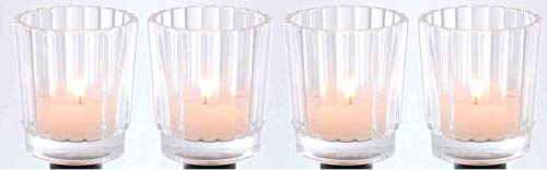 Novaliv 4 portacandele da tè in vetro per candeliere, finitura rigata, trasparenti, diametro 6 cm, altezza 7,5 cm, portacandele da tè per lampadari sospesi