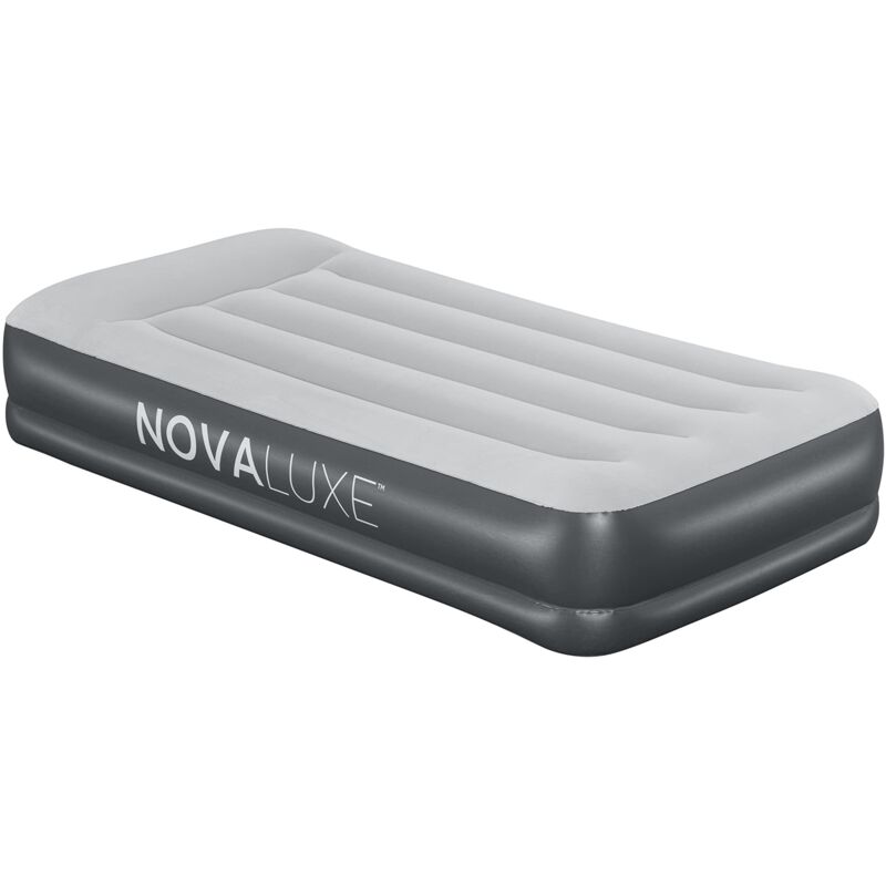 Novaluxe - Materasso gonfiabile singolo (modello twin) con pompa incorporata, cuscino e presa USB RIPOSO ASSICURATO: il materasso ad aria di Novaluxe è costruito con la struttura I-Beam. Composto da 3 strati resistenti, questo materasso conserverà la sua forma e rimarrà stabile per tutta la notte. MATERIALI DI QUALITÀ: i materassi in Tritech aiutano a mantenere una postura corretta durante il sonno. Una rete di poliestere è posizionata tra due strati resistenti di PVC che forniscono un supporto adeguato alla schiena e alle spalle. GONFIAGGIO VELOCE: La pompa integrata gonfia silenziosamente il materasso ad aria in soli 5 minuti con un pulsante. 1 ANNO DI GARANZIA: Noi di Novaluxe ci preoccupiamo della qualità dei nostri prodotti! Siamo pronti a risolvere ogni problema o malfunzionamento del tuo acquisto. TUTTO QUELLO DI CUI HAI BISOGNO: Nella confezione troverai: 1 materasso gonfiabile con pompa e cuscino integrati, 1 custodia per riporlo e trasportarlo comodamente e 1 toppa di