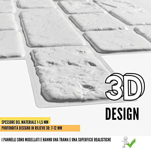 Ogni pannello di plastica 3D misura 95.1 cm x 49.3 cm un pannello copre 0.47 m2 Copri l'intera parete o solo una parte: scegli tu quanti pannelli di rivestimento parete ti servono per il tuo progetto.