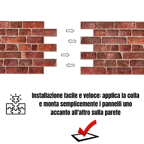 NOVECRAFTO Pannelli Decorativi 3D per Parete Effetto Mattone PVC - Set di 12 Pannelli | 5.64 qm - Pannelli di Rivestimento Parete per Interni Rosso Pannelli Per Pareti Muro Effetto Mattone