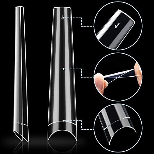 Noverlife 600PCS 3XL Extra Lungo C Curva Bara Punte Unghie False, Chiodi Chiodi Finti, XXXL Super Lungo Ballerina Mezza Copertura Chiodi Finto, Forma Della Bara Chiodi Artificiali