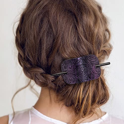Noverlife 6PCS Barrette per capelli in pelle con bastone, forma quadrato Clips per capelli Pins Portacoda di cavallo, set di capelli clip per capelli Barrette per capelli con legno Slide Stick