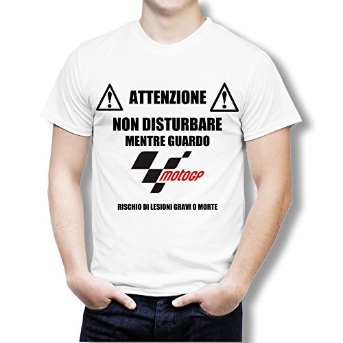 Novesei Tshirt ATTENZIONE! Non Disturbare Mentre GUARDO Moto GP Tshirt Uomo, Ironiche, Stampa Digitale, Stampa Diretta (M)