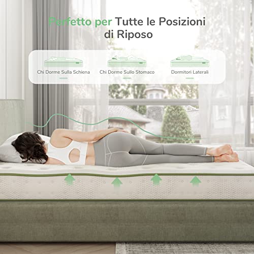 【COMODA FERMEZZA MEDIA】La spessa schiuma a freddo del materasso a molle vi fa sentire traspiranti e freschi, mentre le molle indipendenti sottostanti vi offrono un sostegno abbondante, dividendo ergonomicamente il corpo in sette zone per fornire un senso di sostegno extra in aree come spalle, fianchi e ginocchia. Sia che siate sdraiati in piano o su un fianco, il materasso si adatta al vostro corpo e lo sostiene in ogni sua parte, consentendovi di dormire più comodamente, di svegliarvi carichi di energia al mattino e di iniziare una giornata fantastica.