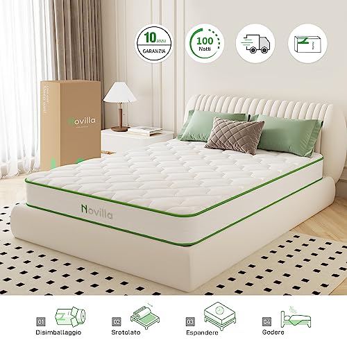 Novilla Materasso 80x200, Materasso Singolo con Molle Insacchettate e Schiuma - Altezza 20cm, Materasso Ibrido Equilibrio Perfetto tra Sostegno e Comfort, Resistente Durata nel Tempo