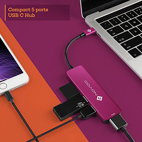 Novoo USB C Hub (5 in 1) Alluminio con HDMI 4K, 2 porte USB 3.0 Superspeed, 1 porta di memoria SD, 1 lettore di schede di memoria microSD per MacBook Pro 2015/2016/2017, nuovo MacBook da 12 pollici, Chromebook e altri dispositivi Type-C