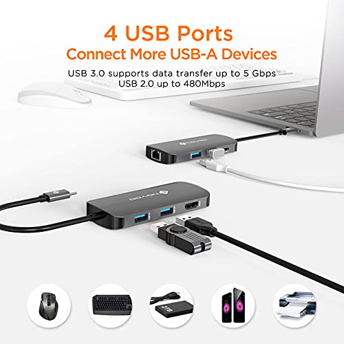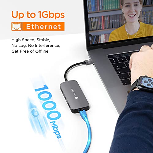 【USB C PD 100 W Fast Charge e Gigabit Ethernet】 Alimenta rapidamente laptop e dispositivi collegati fino a 100 W (20 V 5 A) con la porta di ricarica di tipo C 100W PD - Compatibile con Macbook Pro 16" - LAN RJ45 per connessione stabile alla rete Gigabit - Scarica un film 1G in pochi minuti