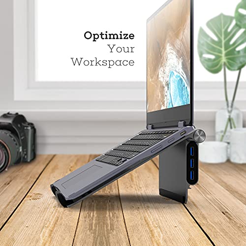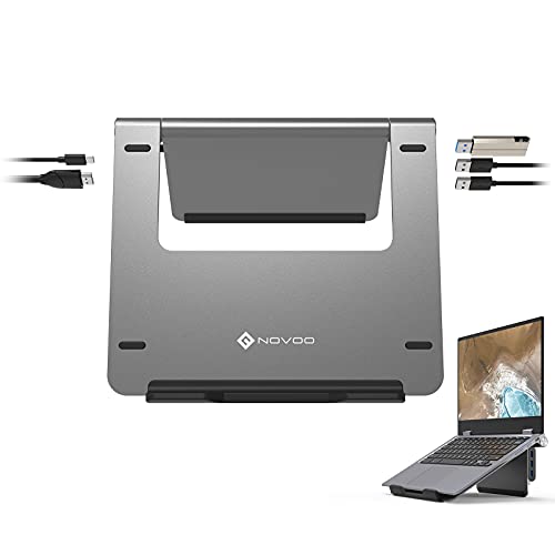 NOVOO Supporto per Laptop con Hub USB C 5 in 1, Riser per Laptop Pieghevole con HDMI 4K, 100W PD, 3 Porte USB 3.0, Supporto per Laptop Regolabile Compatibile con MacBook Pro/Air, Dell, Lenovo,10-16''