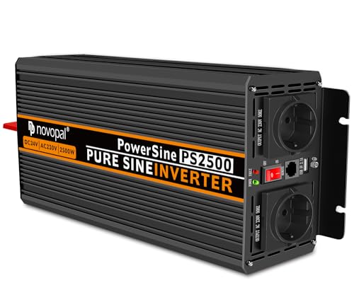 NOVOPAL Inverter Onda Pura 2500W Sinusoidale Pura DC 24v in AC 220v Invertitore di Tensione-2 EU Presa con Uscita USB-5 Metri di Telecomando