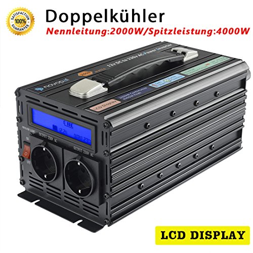 Novopal Power Inverter 2000 4000W Inverter di Potenza 12V 230V Onda sinusoidale modificata LCD con Manico