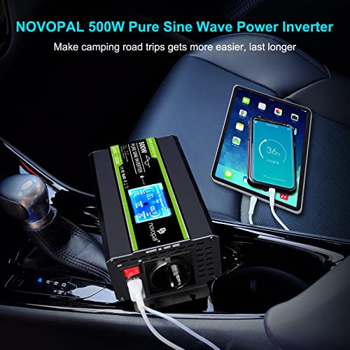 NOVOPAL 500W Onda Sinusoidale Pura Power Inverter DC 12v in AC 220v con Display LCD Intelligente- EU Presa con Uscita USB