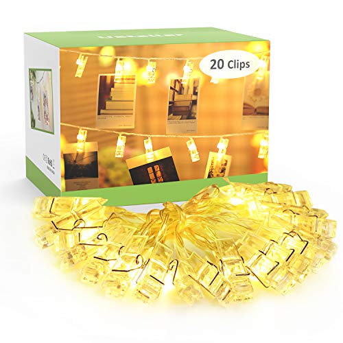 NOVOSTELLA LED Clip Luminosa 3.5m, 20 Clip Catena LED Batteria, Stringa Illuminazione Bianco Caldo per Attaccatura e Decorazione Tabella Foto, Opera D'arte,Nota