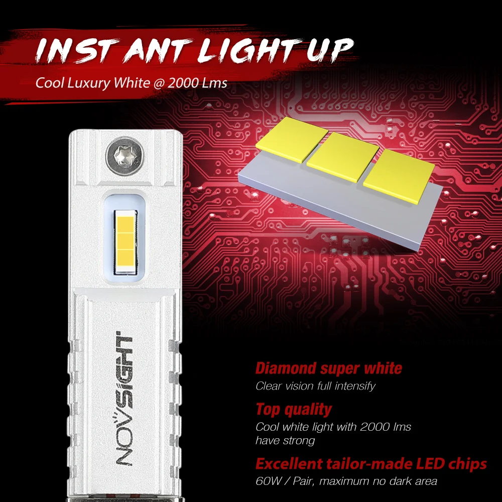 NOVSIGHT 2000LM Fog Light Bulbs LED H11/H8/H9 H7 H3 H1 9005/HB3 9006/HB4 Car Headlight 6000K 60W Headlamps White Fog Lights