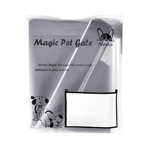 Novsix Magic Pet Gate for Dogs Portable 48 x 32 Pollici Pieghevole Isolamento Mesh Cancello di Sicurezza per Cani Recinto di Sicurezza per Cani Garza isolata Installa da Un Robusto Gancio e Nastro
