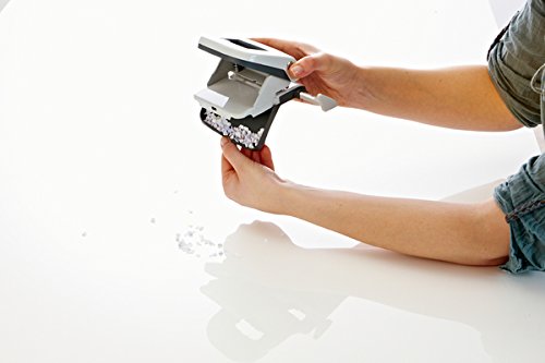 Il perforatore è un dispositivo completamente in metallo con un rivestimento in un mix di plastica e metallo. La parte inferiore può essere aperta a metà per svuotare il coriandolo.