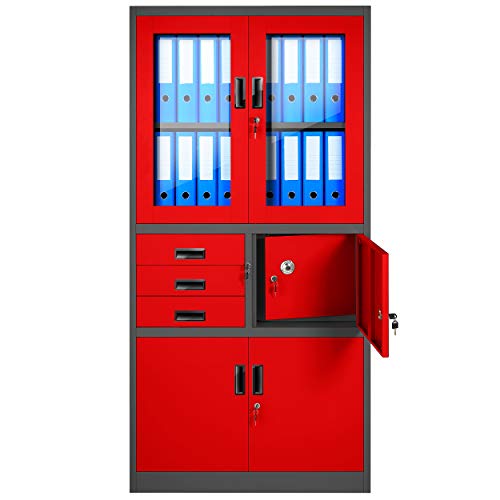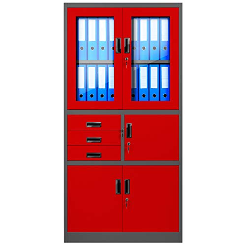 Jan Nowak Armadio da Ufficio Archivio Armadietto in Metallo con Cassaforte Scomparto segreto Porte a battente Cassetti Rivestimento in polvere 185 cm x 90 cm x 40 cm (Antracite-Rosso)
