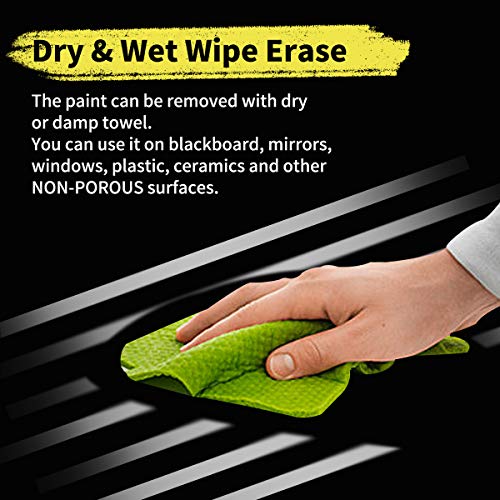 ✎ CANCELLA FACILMENTE - Asciutto o bagnato cancellabili, rimuovere l'inchiostro bianco del gesso solo in pochi secondi da una superficie non puro con un panno asciutto o umido.