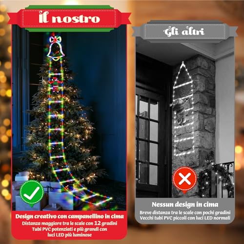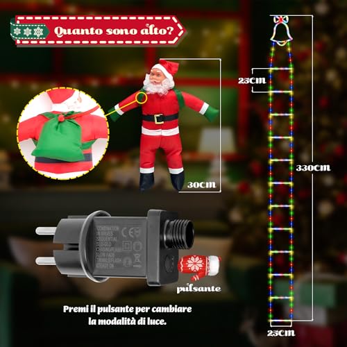 【Migliora le Luci Decorative di Natale】Crea un'atmosfera festosa con le nostre luci natalizie dal design unico, con una scala illuminata di 330 cm e un Babbo Natale staccabile di 30 cm. Perfette per decorare casa, giardino, finestra, veranda e alberi di Natale.