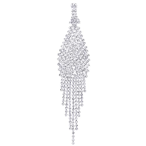 Nozze Sposa Nuziali Banchetti Strass Pavé Cluster Catena Lunga Nappa Pendenti Grande Statement Dichiarazione Orecchini