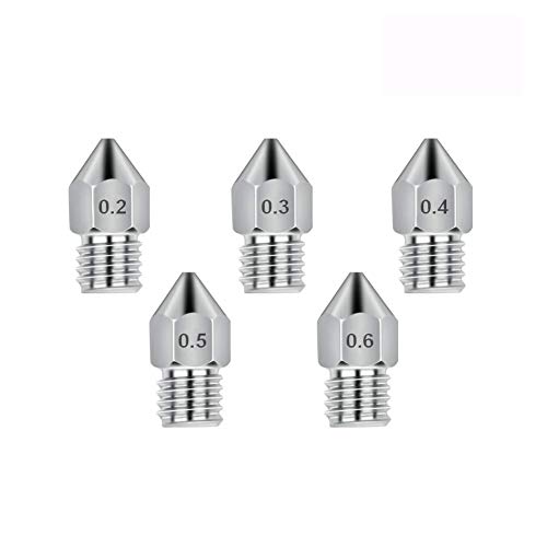 5Pcs Nozzle in Acciaio Inox (0.2-0.3-0.4-0.5-0.6mm) Stampante 3D Ugello per Estrusore (hotend) con Filamento (PLA ABS PETG CARBONIO KEVLAR TPU) 1.75mm Compatibile con Makerbot MK8 Prusa i3 Anet A8 Creality