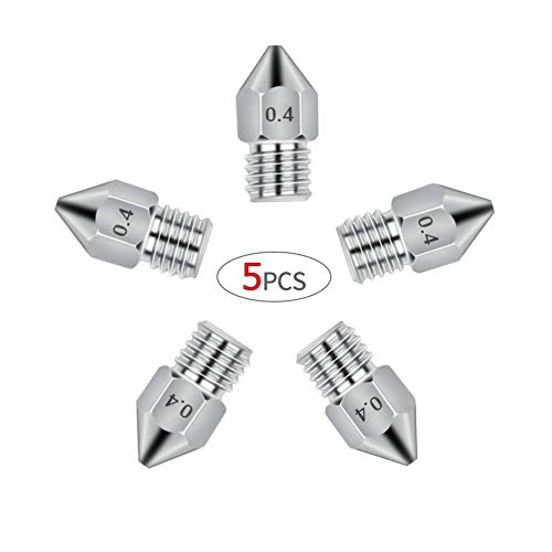 5Pcs Nozzle in Acciaio Inox (ugelli 0.4mm) Stampante 3D Ugello per Estrusore"hotend" 1,75 (PLA ABS PETG CARBONIO KEVLAR TPU) Compatibile con Makerbot MK8 Prusa i3 Anet A8 Creality (0.4)