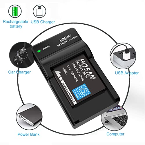 NP-50 HOSAN 2 Batteria di Compatibile con Serie Fujifilm NP-50 FinePix F100fd F200EXR F300EXR F50fd F550EXR F600EXR F60fd F70EXR F770EXR F800EXR