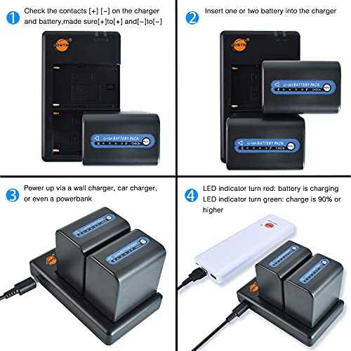 DSTE 2PCS NP-QM91D NP-QM91 (5500mAh/7.4V) Batteria Caricatore Compatibile per CCD-TRV118,CCD-TRV228,CCD-TRV328,DCR-DVD200,DCR-DVD201,DCR-DVD300,DCR-DVD301,DCR-HC14,DCR-PC105,DCR-PC120BT