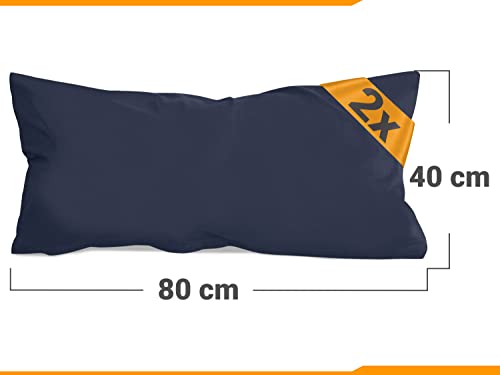 Npluseins 552.676 - Set di Biancheria da Letto in Jersey di Cotone, 2 Pezzi, Cotone, Blu Navy, 40 x 80 cm