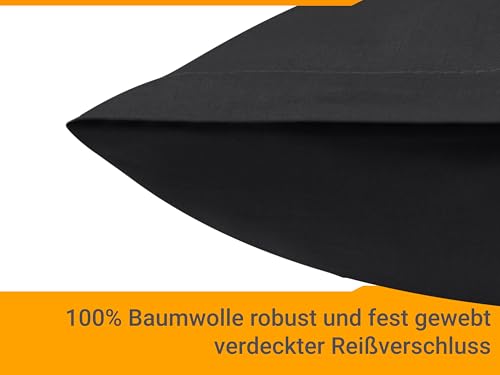 Npluseins, Federe in tessuto resistente in confezione doppia, 100% cotone, design semplice e di alta qualità, 100 % cotone, nero, 40 x 40 cm