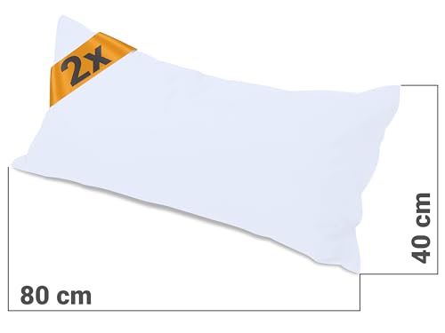 Npluseins, Federe in tessuto resistente in confezione doppia, 100% cotone, design semplice e di alta qualità, 100 % cotone, bianco, 40 x 80 cm