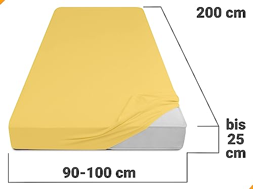 Npluseins - Lenzuolo sotto in jersey 100% cotone, giallo, 90-100 x 200 cm