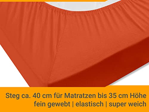 Npluseins - Lenzuolo sotto in jersey 100% cotone, kaminrot, 200 x 220 cm