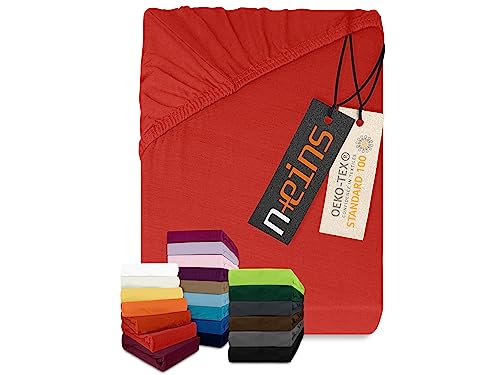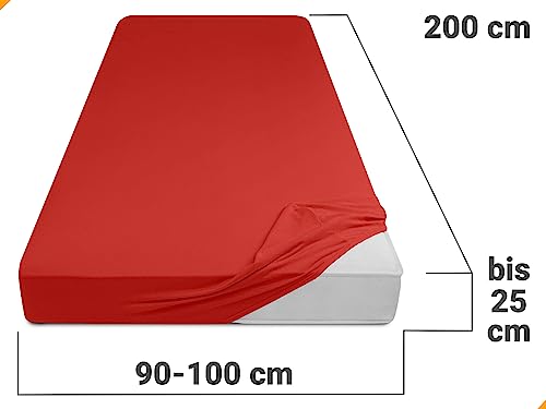 Npluseins - Lenzuolo sotto in jersey 100% cotone, rosso, 90-100 x 200 cm