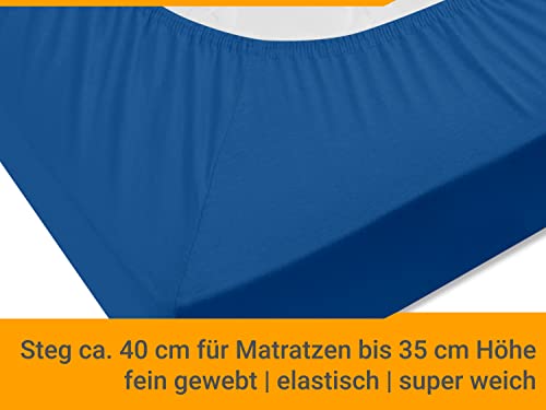 Npluseins - Lenzuolo sotto in jersey 100% cotone, blu royal, 200 x 220 cm