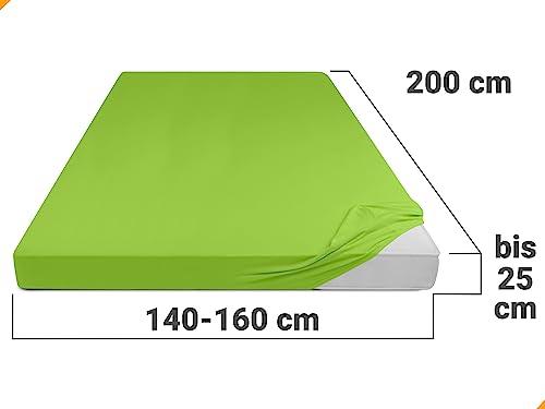 Npluseins - Lenzuolo sotto in jersey 100% cotone, verde mela, 140-160 x 200 cm