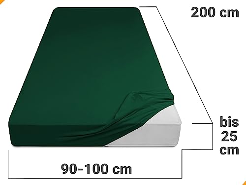 Npluseins - Lenzuolo sotto in jersey 100% cotone, verde scuro, 90-100 x 200 cm