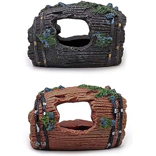 NPTGLYQW 2 Pezzi Artificiale Tronco Resina Grotta Barile Resina Acquario Acquario Grotta Legno Grotta per Acquario in Resina Ornamento per Acquario per Acquario Paesaggistica Decorazione